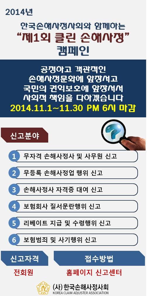 한국손해사정사회는(이하 '한손회') 공정한 손해사정문화에 앞장서고, 국민의 권익을 보호하고자 '제1회 클린 손해사정' 캠페인을 실시한다.