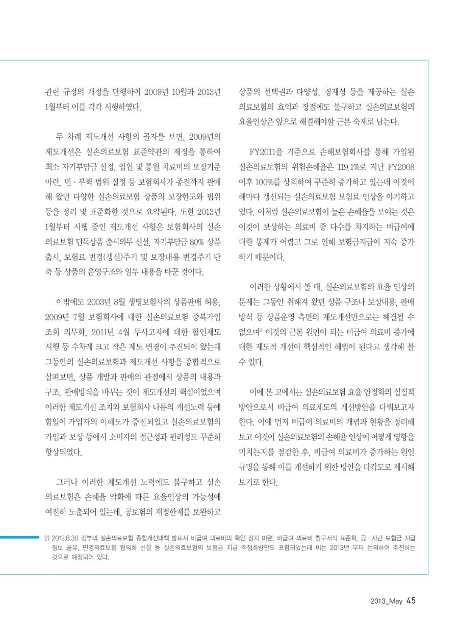 월간 손해보험 2013년 05월호 _ 실손의료보험 요율 안정화의 실질적 방안으로서 비급여 의료제도 개선(상)
