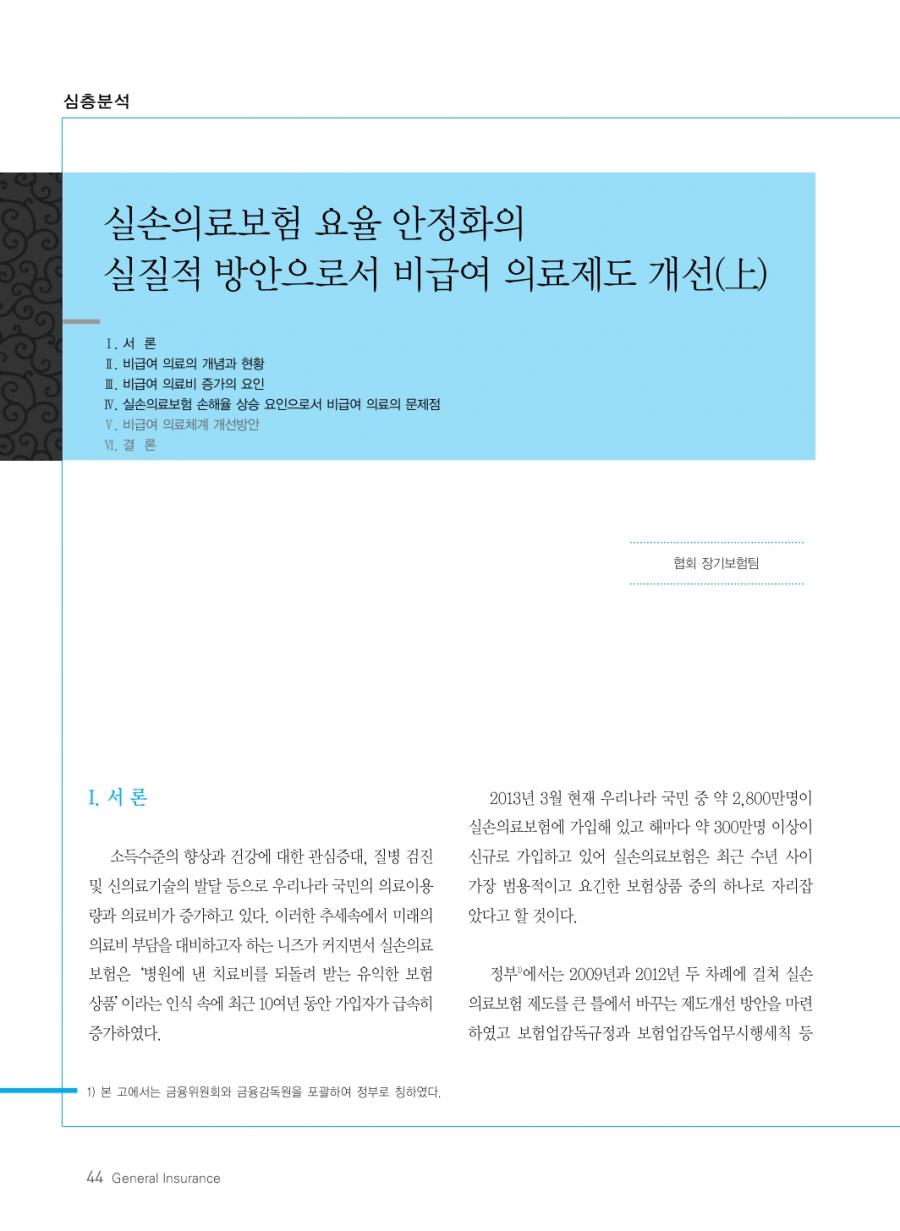 ★ 제목: 실손의료보험 요율 안정화의 실질적 방안으로서 비급여 의료제도 개선(상)
