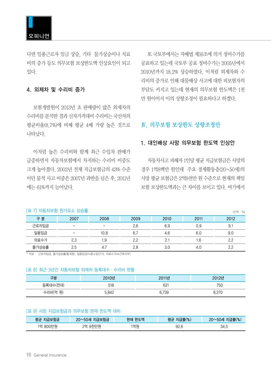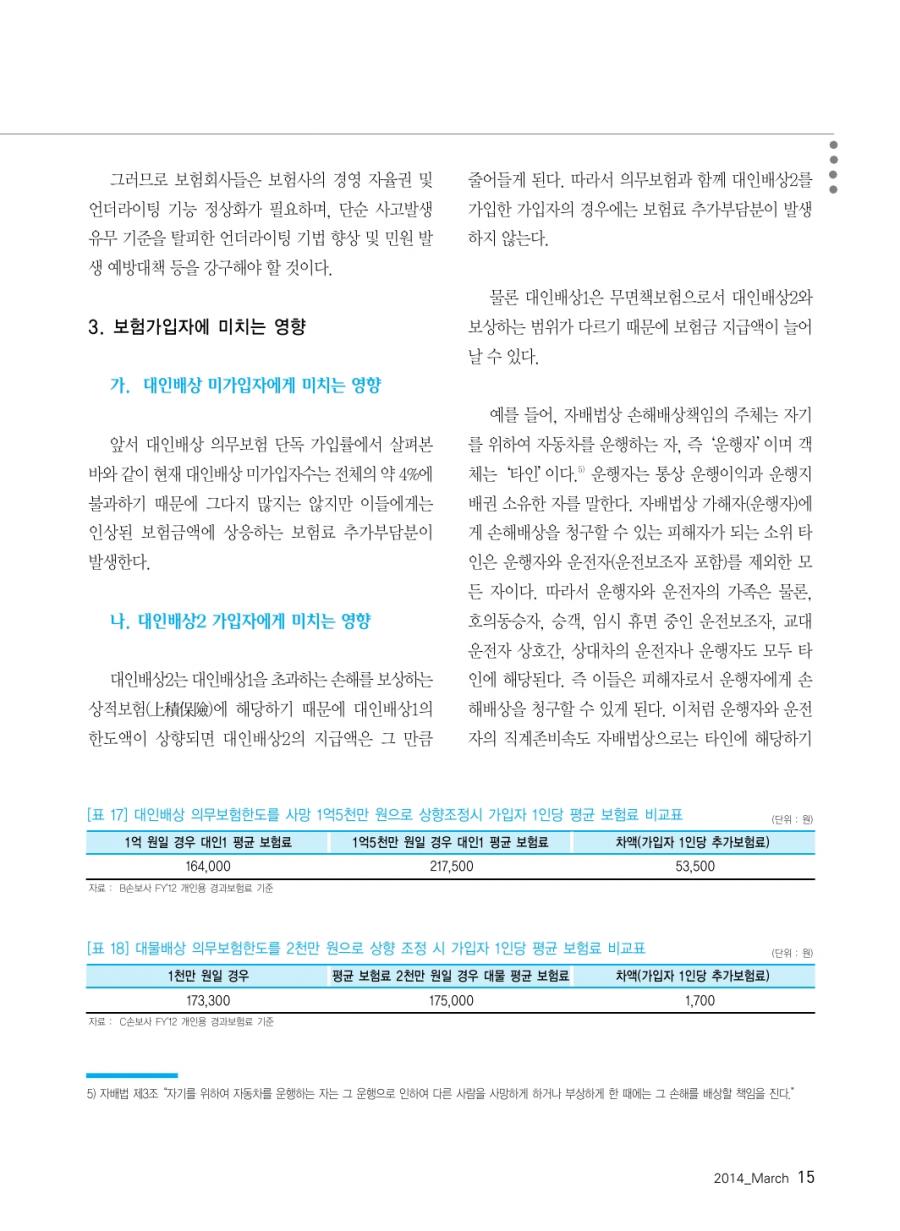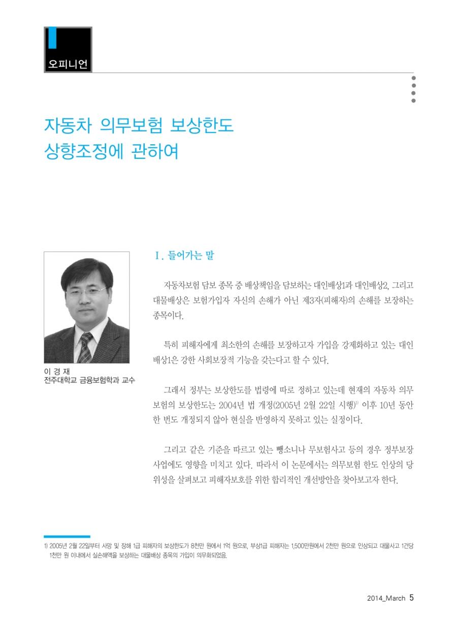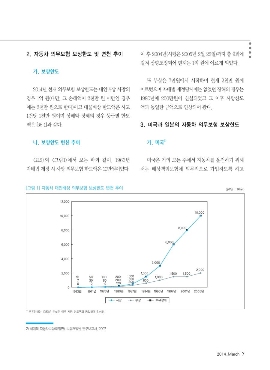 월간 손해보험 2014년 03월호 발췌 _ 자동차 의무보험 보상한도 상향조정에 관하여