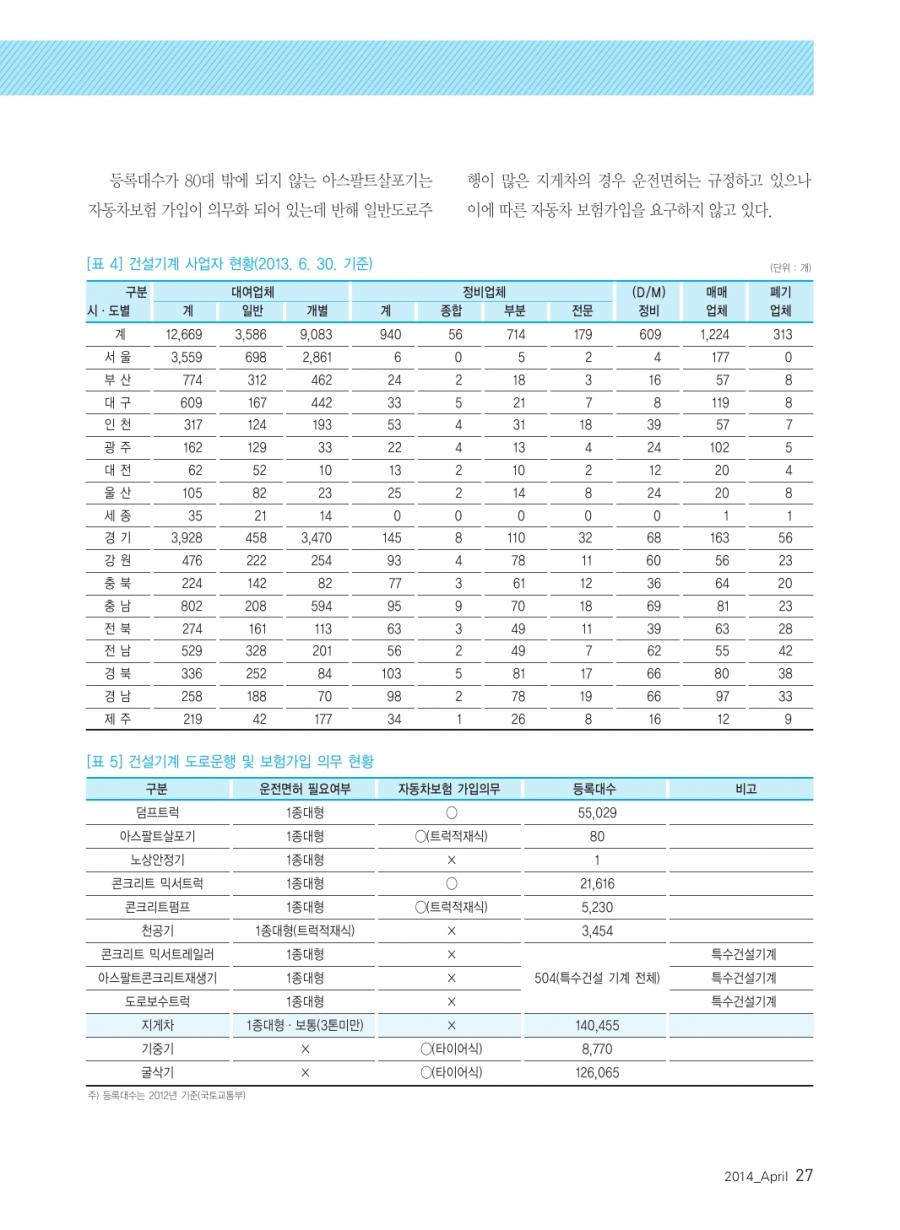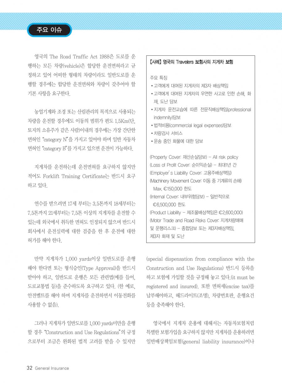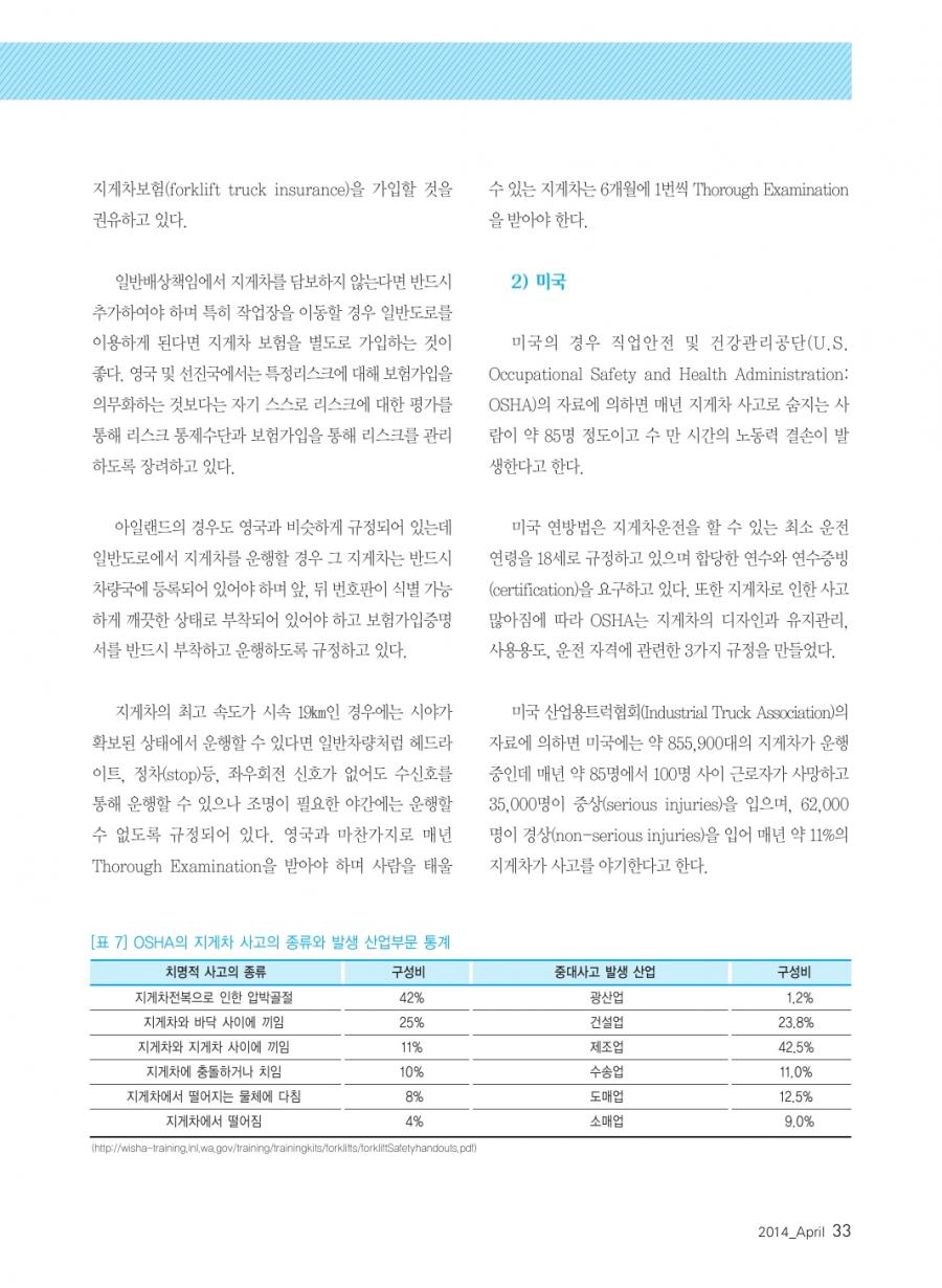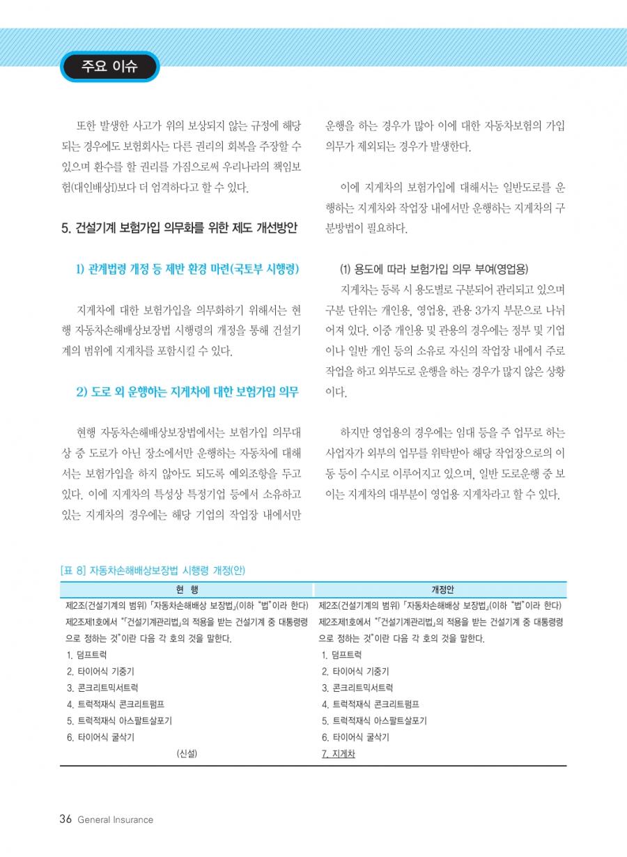 월간 손해보험 2014년 04월호 발췌 _ 교통사고로 인한 피해자보호 강화를 위한 지게차 등 일반 건설기계 가입의무화 방안