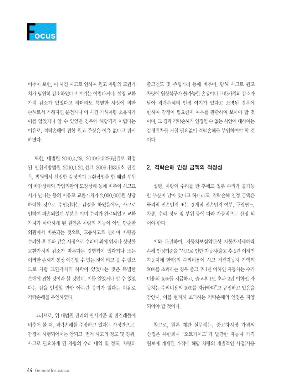 월간 손해보험 2014년 05월호 발췌 _ 차량손해 인정 기준에 대한 소고