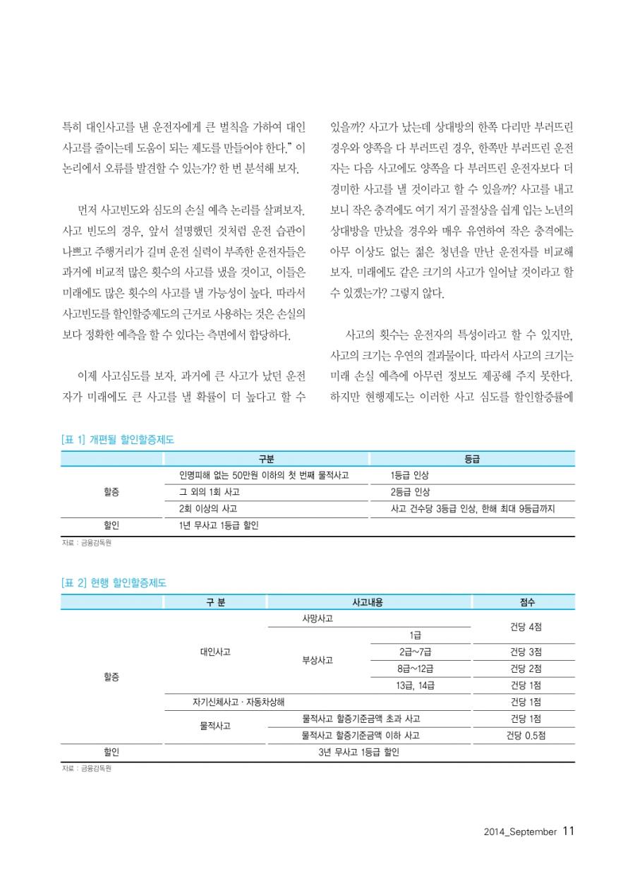 월간 손해보험 2014년 09월호 발췌 _ 자동차보험 할인할증제도의 변화