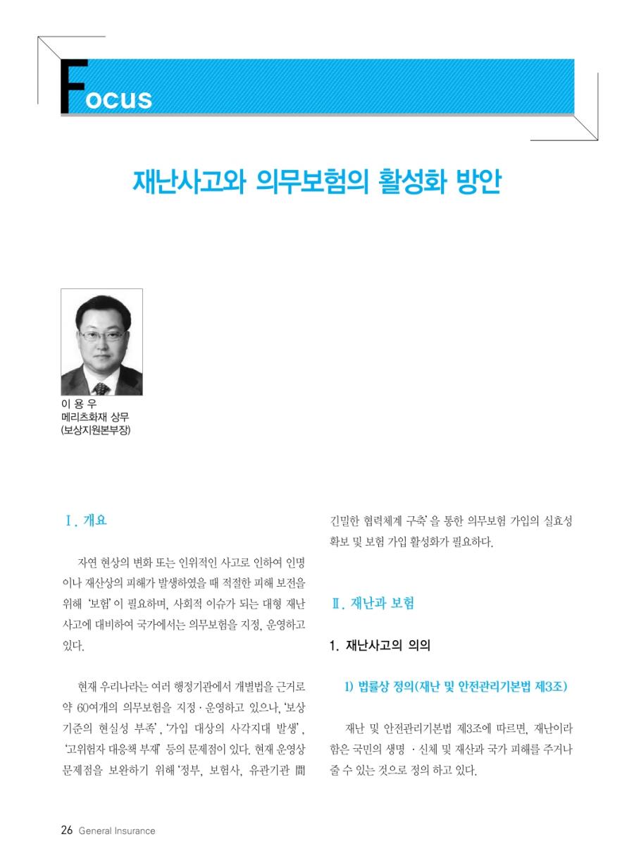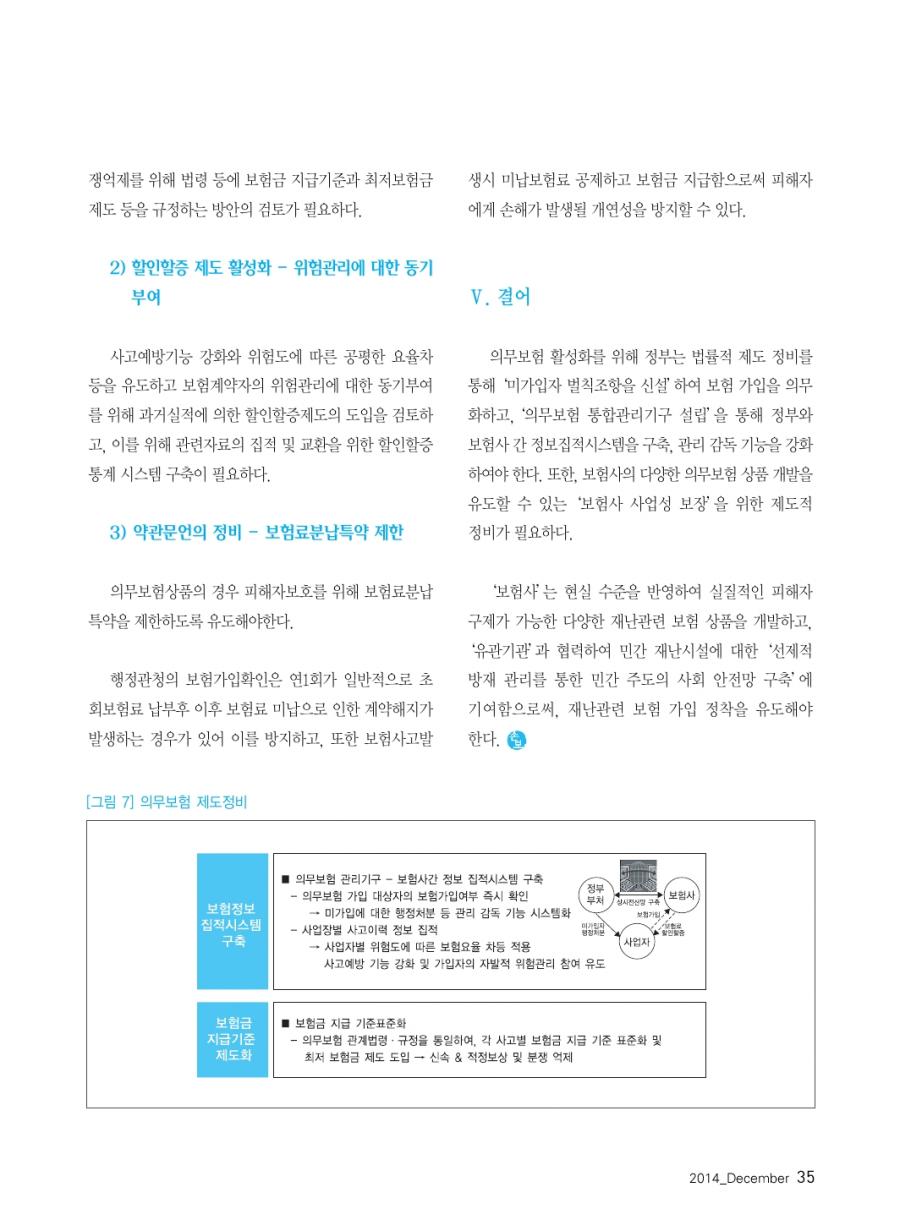 월간 손해보험 2014년 12월호 발췌 _ 재난사고와 의무보험의 활성화 방안